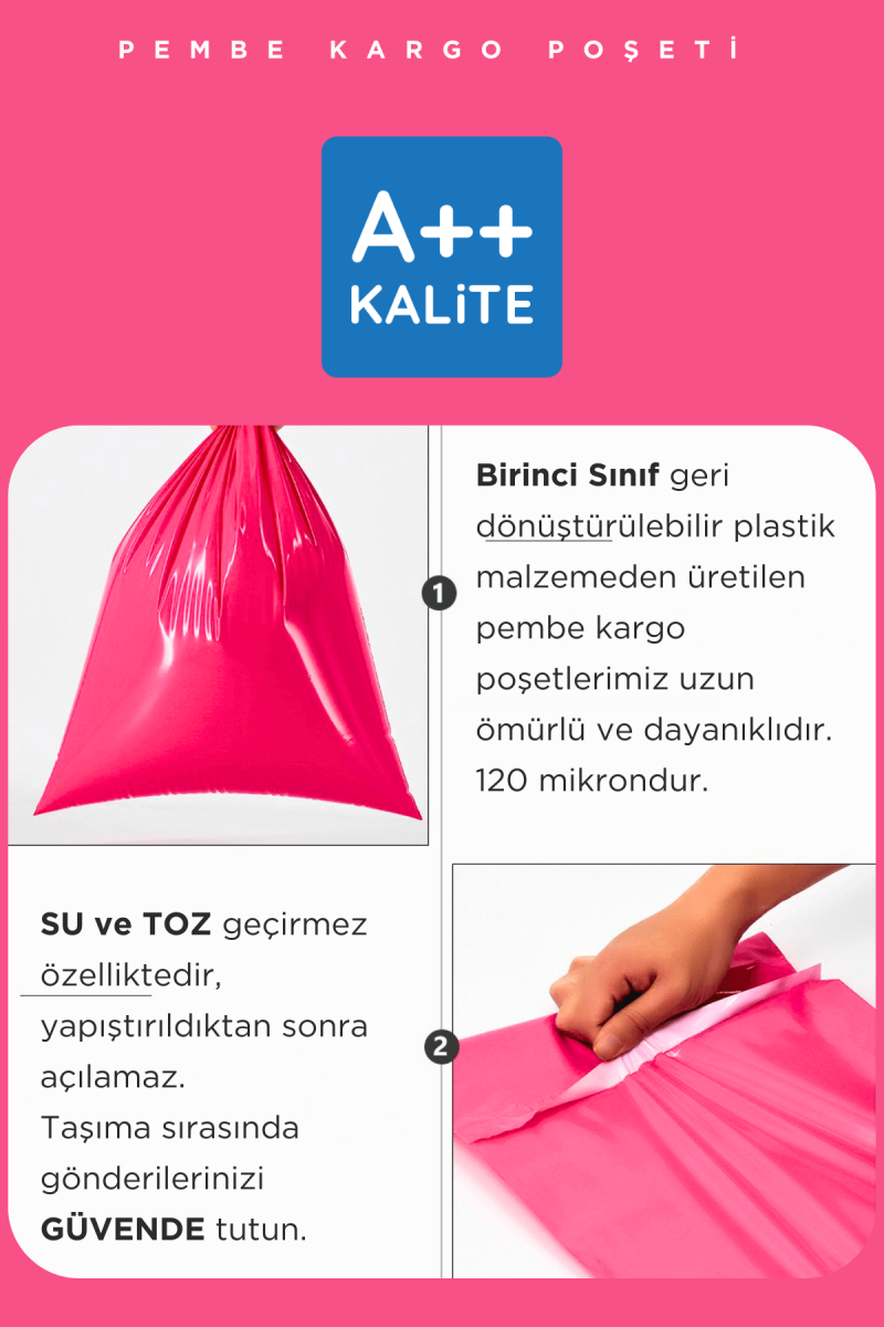 Premium pembe kargo poşetlerimiz ile gönderilerinizi güvenle taşıyın ve müşterilerinizietkileyin!